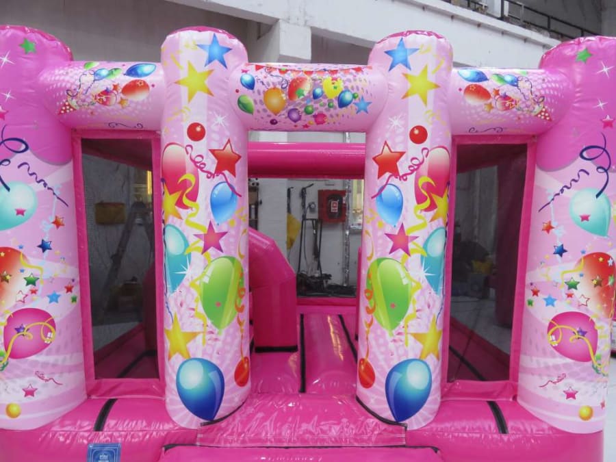 Get ready for a bouncing adventure with the Pink Playzone Castle! This indoor bouncy castle is perfect for girls' parties, providing endless fun and excitement. With its vibrant pink color and eye-catching design, it will surely be the center of attention at any event.